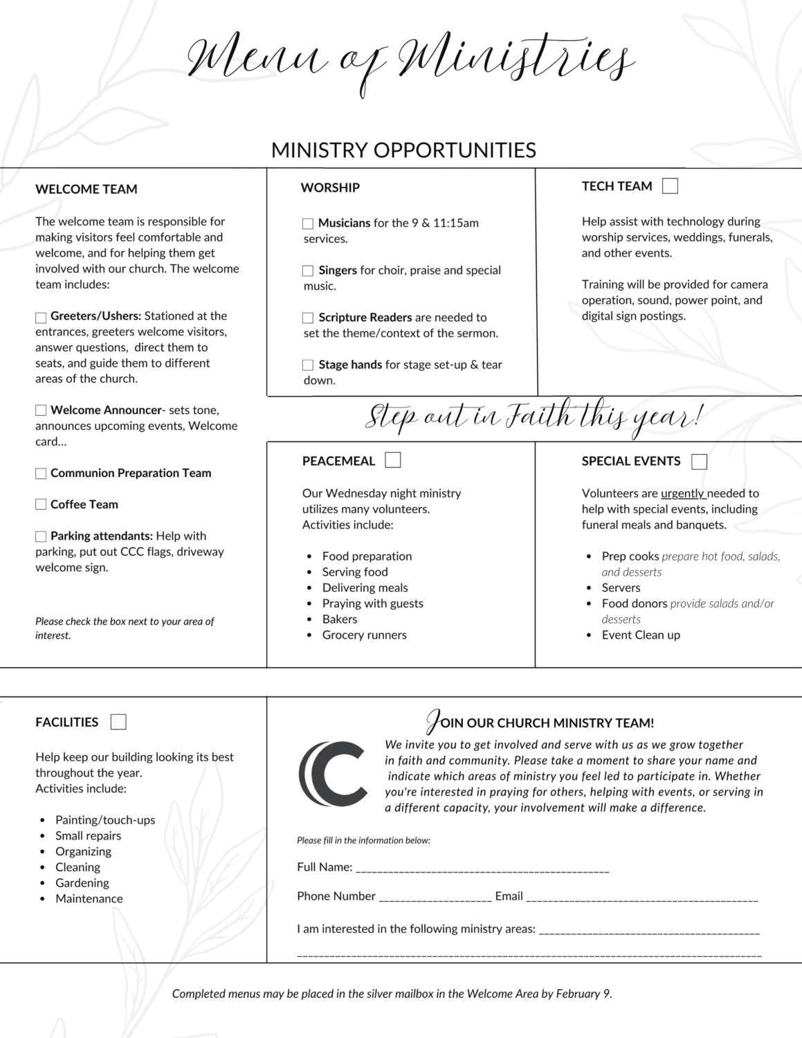 Emily Carter serves as the Nursery Coordinator. Emily feels called to share God’s love with children and teach them His ways (Proverbs 22:6). She feels blessed to serve in this area of ministry and is excited to see how she can be used to further His kingdom. Emily is also on staff at the Fredericktown Christian Preschool.
